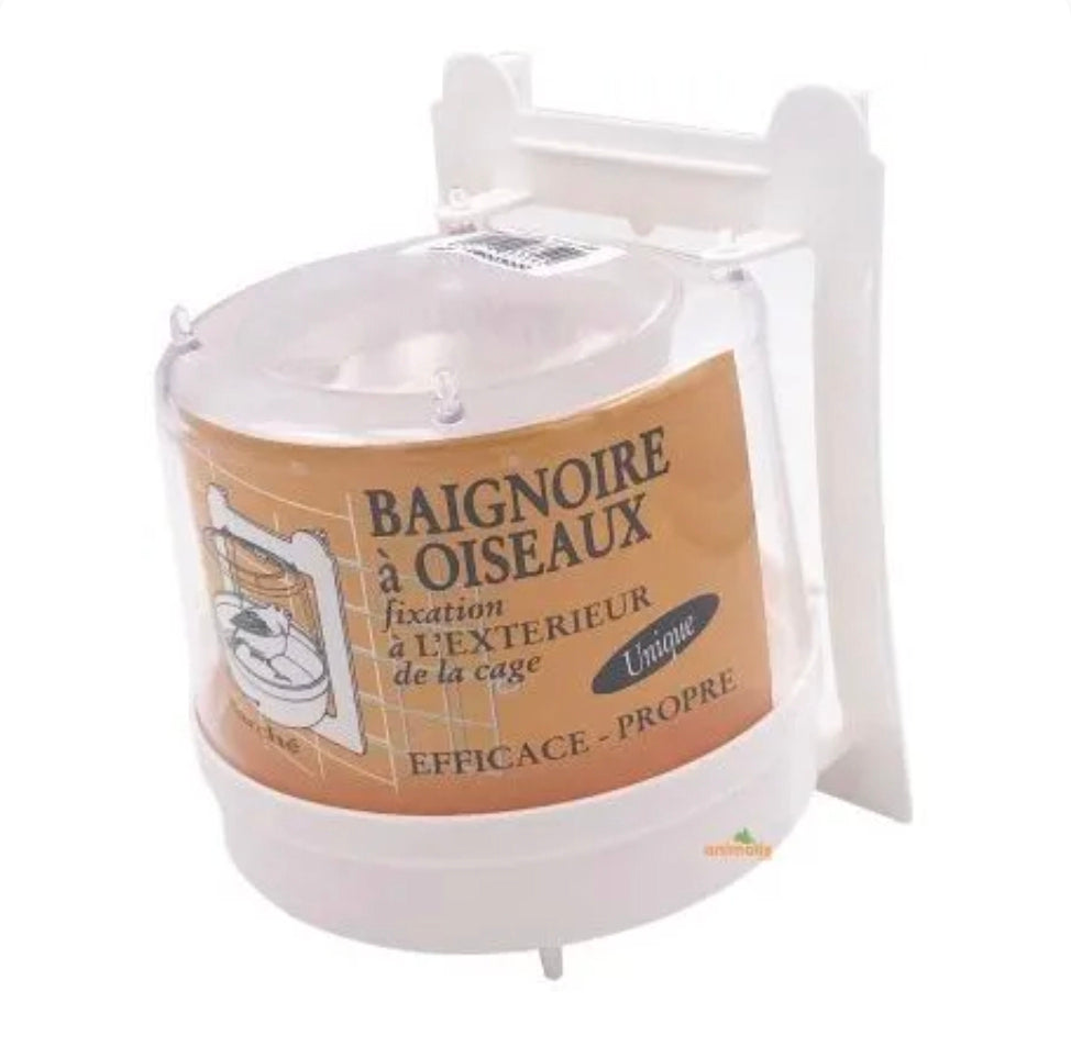 Dit type badhuis heeft een dubbele functie. Kan zowel aan de buitenkant van de kooi geplaatst worden. Maar indien men het rechthoekig ophang stuks verplaatst is deze ook bruikbaar in de kooi.
