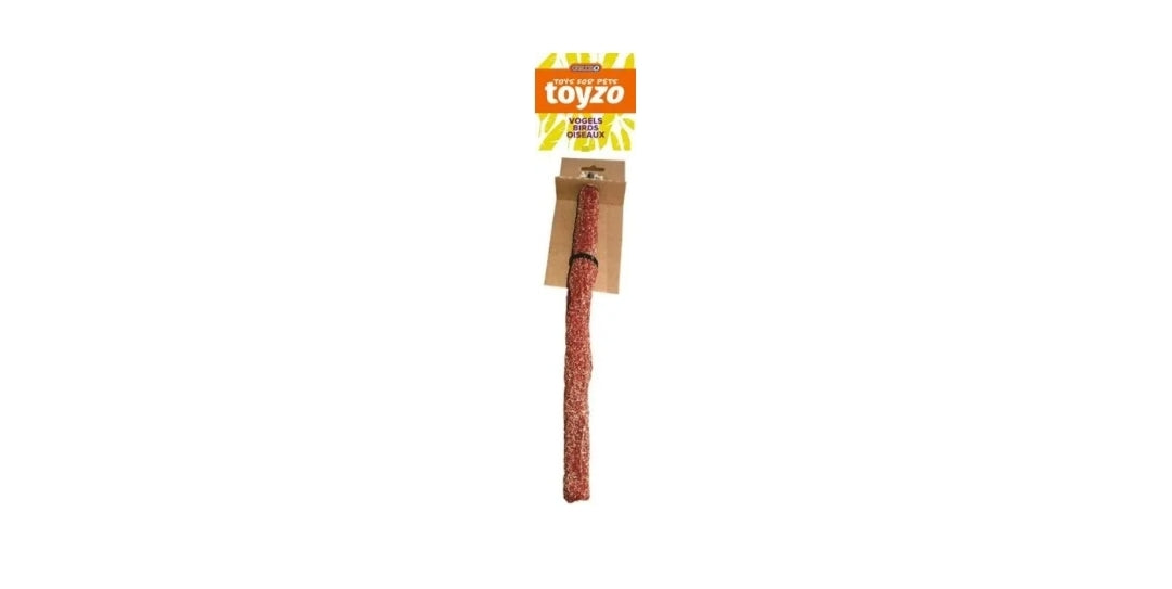 Een forse houten zitstok voor grote en middelgrote vogels bedekt met grof koraalzand voor het kort houden van de nagels en de bek