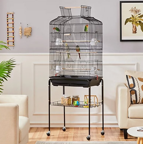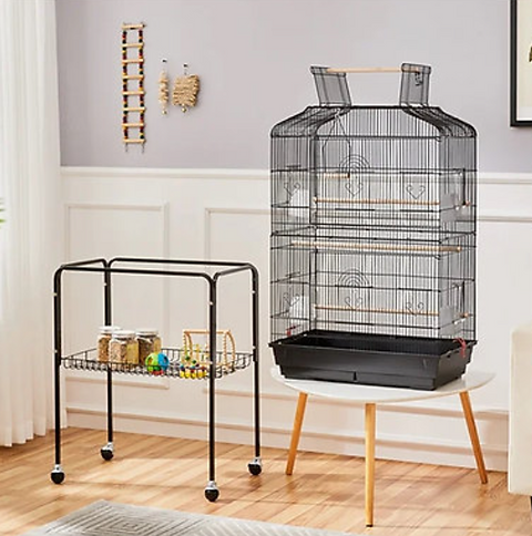 Zeer praktische kooi met staander, geschikt voor parkieten en papegaaien. Leuke kooi passend in uw leef ruimte. Ook passend voor handtamme vogels of vogels die vrij kunnen rond vliegen.