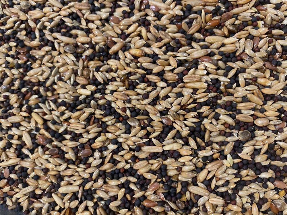 De mengeling bestaat uit: kanariezaad, raapzaad, haver gepeld, kempzaad, lijnzaad en niger zaad.