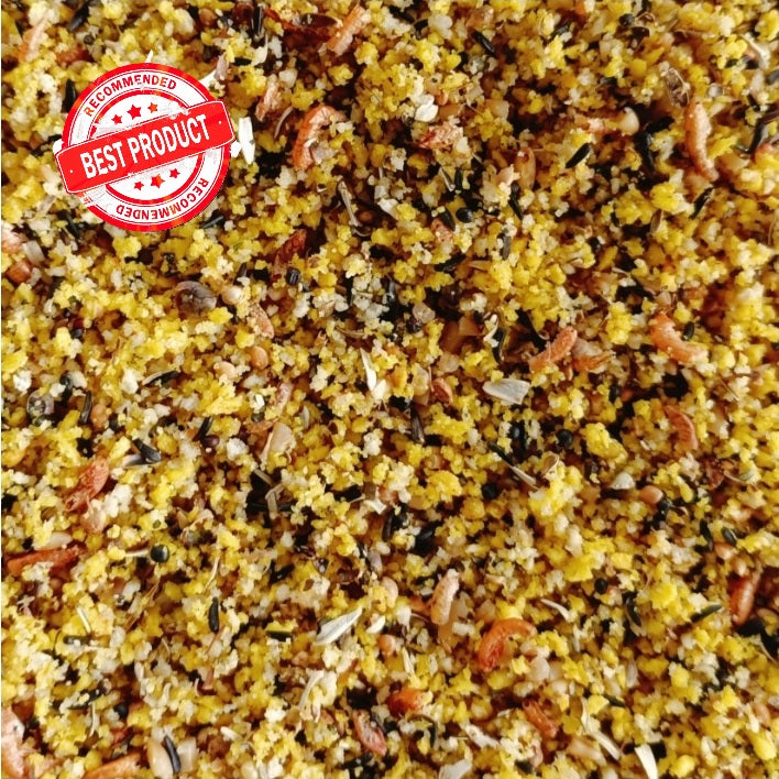 Gebruiksklaar eivoer voor Europese vogels: een voedzaam opfokvoer dat is samengesteld om aan de voedingsbehoeften van Europese vogels te voldoen. Dit eivoer is verrijkt met zaden en dierlijke eiwitten, waardoor het een uitgebalanceerde voedingsoptie is.