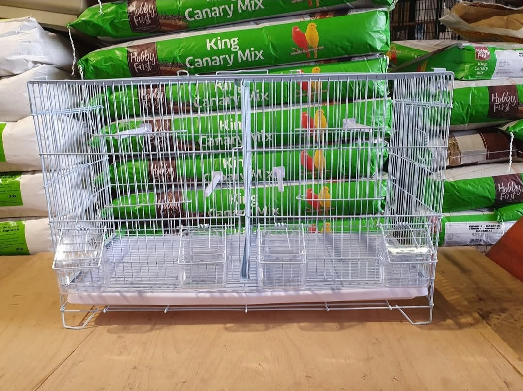 ◾Geleverd met voeder- en drinkbakken en zitstokken.