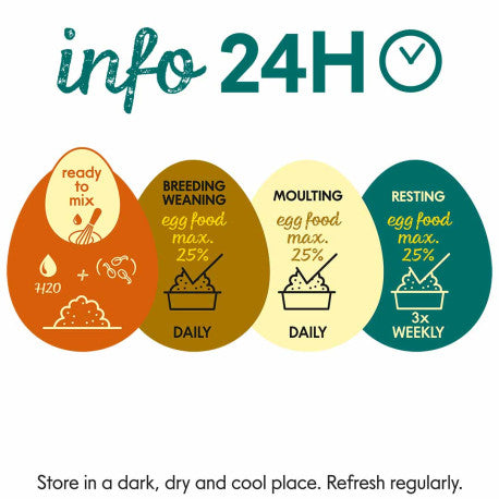 • Kweekperiode dagelijks, indien mogelijk 2 à 3 maal daags, naar behoefte CéDé® eivoer geven.