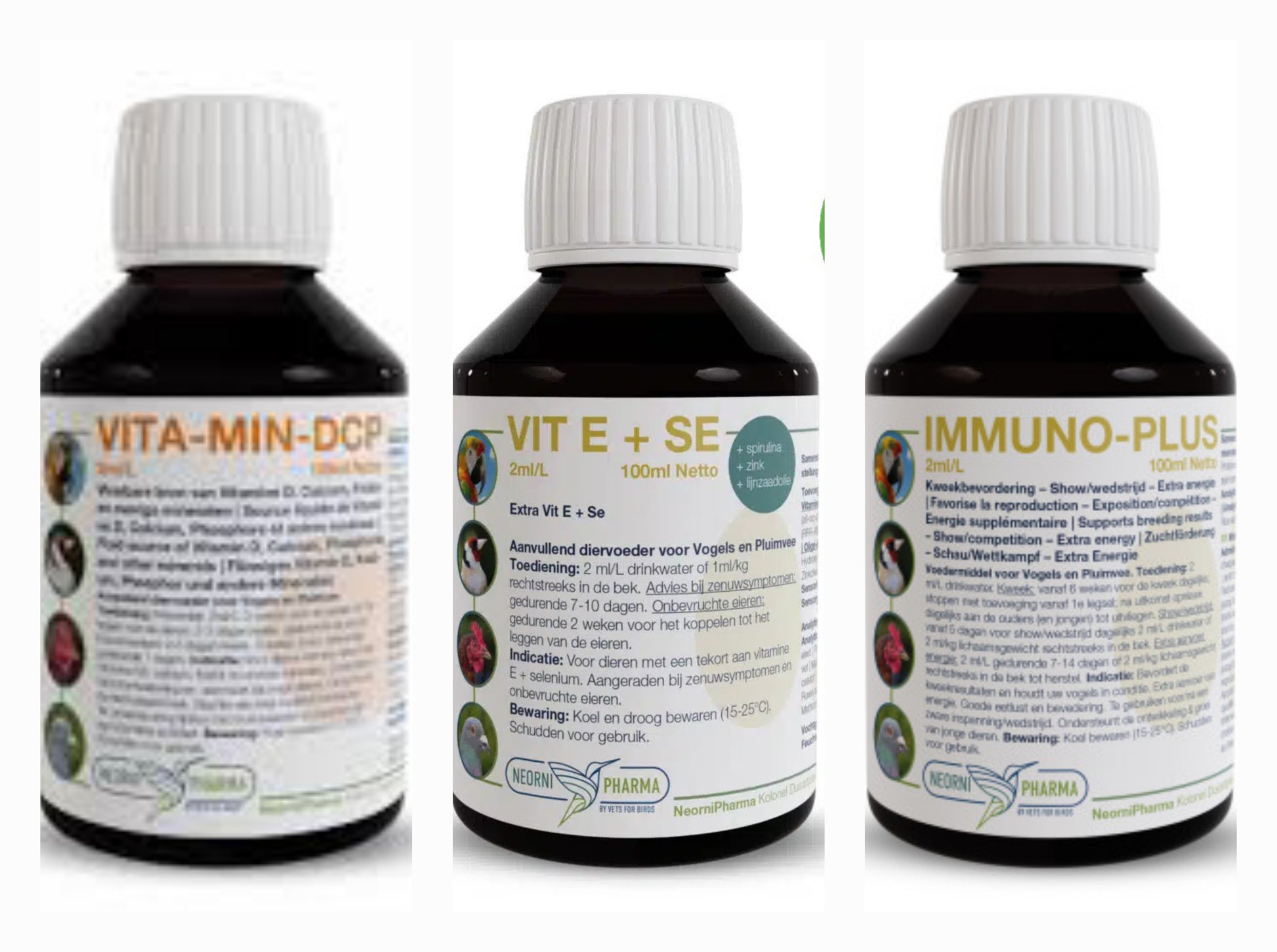 ▪︎ Kweek: Meng 2 ml IMMUNO-PLUS per liter drinkwater dagelijks vanaf 6 weken voor de kweek. Stop de toevoeging na het eerste legsel. Na het uitkomen van de eieren opnieuw dagelijks toedienen aan de ouders en de jongen totdat ze uitvliegen.