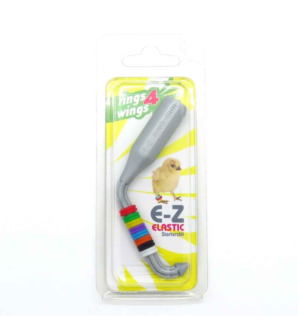 Dit concept van elastische ringen die met behulp van het hiervoor speciaal ontwikkeld E-Z Ringpistool, op een simpele manier, om de poot kunnen worden gedaan.