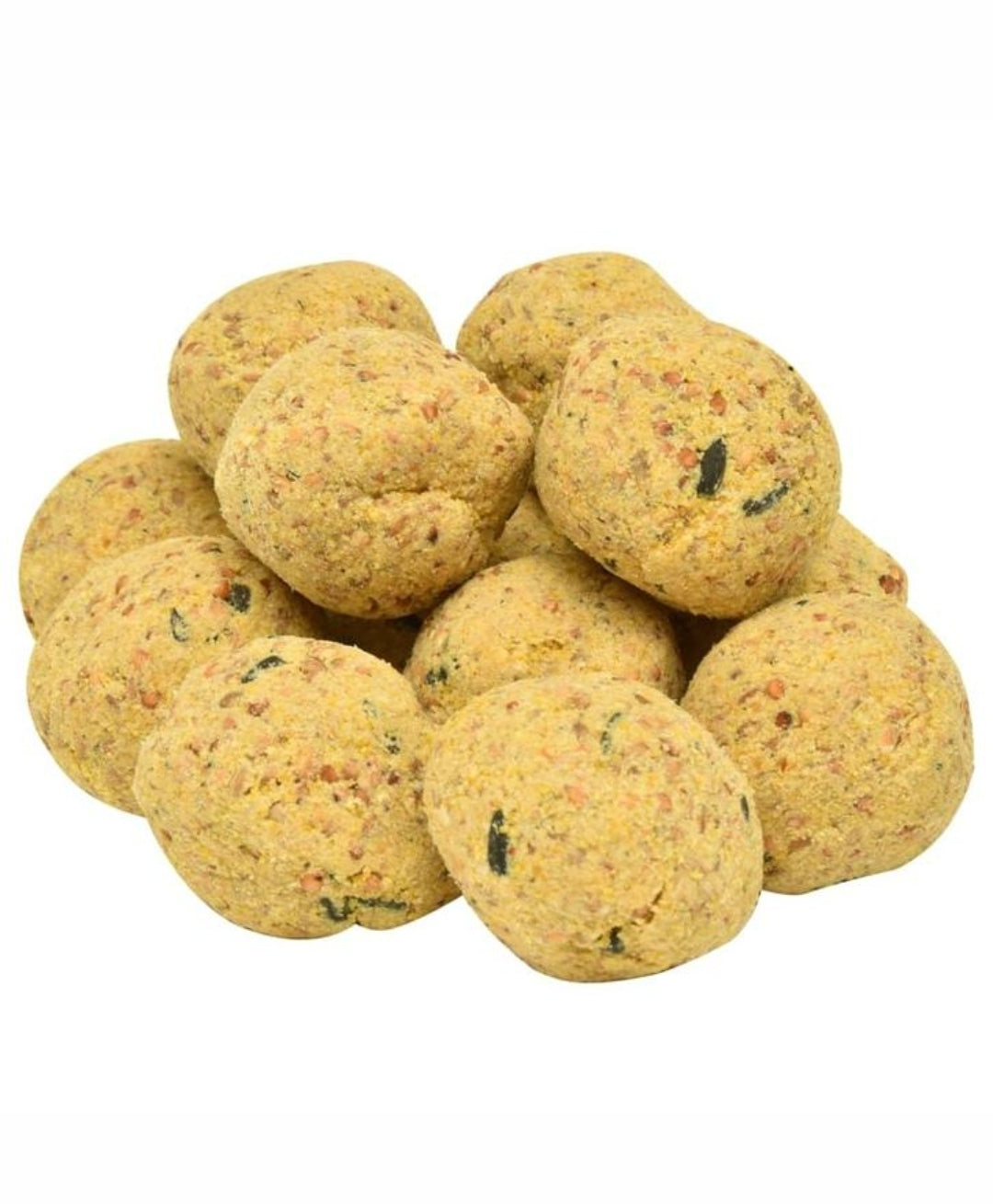 Deze hoogwaardige vogelvetbollen bieden een voedzame mix van energierijke grondstoffen, die perfect zijn voor wilde vogels. Granen, zoals tarwe en maรฏs, zaden, zoals zonnebloempitten en sorghum, eetbare vetten, calcium zijn goed geproportioneerd in deze vetbollen. Ze bieden energie en houden vogels warm tijdens koude wintermaanden. Dit pakket vetbollen bevat 150 stuks; elke vetbol weegt 90 gram. Let op: de vetbollen kunnen worden geplet tijdens expresslevering; vogels eten de gebroken exemplaren net zo graag als de hele. Dit voer is een uitgebalanceerde mix voor alle vogelsoorten. Als je een specifieke vogelsoort wilt aantrekken, kies dan een speciaalvoer en laat je vooraf informeren. Klachten over dat sommige vogelsoorten het voer niet eten of dat het voer te weinig zaad bevat, kunnen niet in behandeling worden genomen.