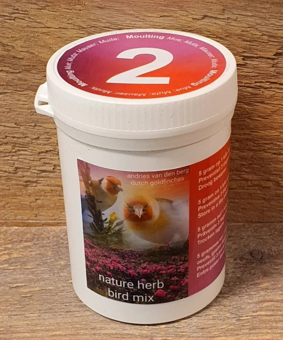 Deze mix is speciaal afgestemt tijdens de rui periode. Het zorgt voor een goede rui en een perfect immuunsysteem tegen de vele problemen tijdens deze periode. Het bevat tevens kruiden voor versterking van de kleuren. Deze mix bevat maar liefst 40 verschillende kruiden