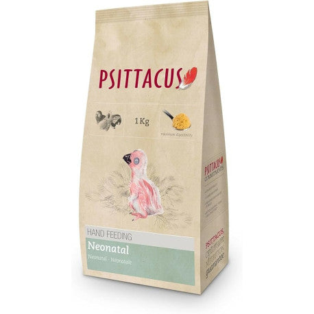 Psittacus Neonatal handvoeding formula is hoogwaardige handvoeding voor verschillende soorten zoals papegaaien, parkieten, ara's, witte kaketoes, Rosella's, maar is niet aan te raden voor valkparkieten, grasparkieten en andere kleinere parkieten. Kan gegeven worden in de tweede neonatale fase tot aan de eerste vorming van veren. Bevat gedroogde ei en papaja voor een betere opname.