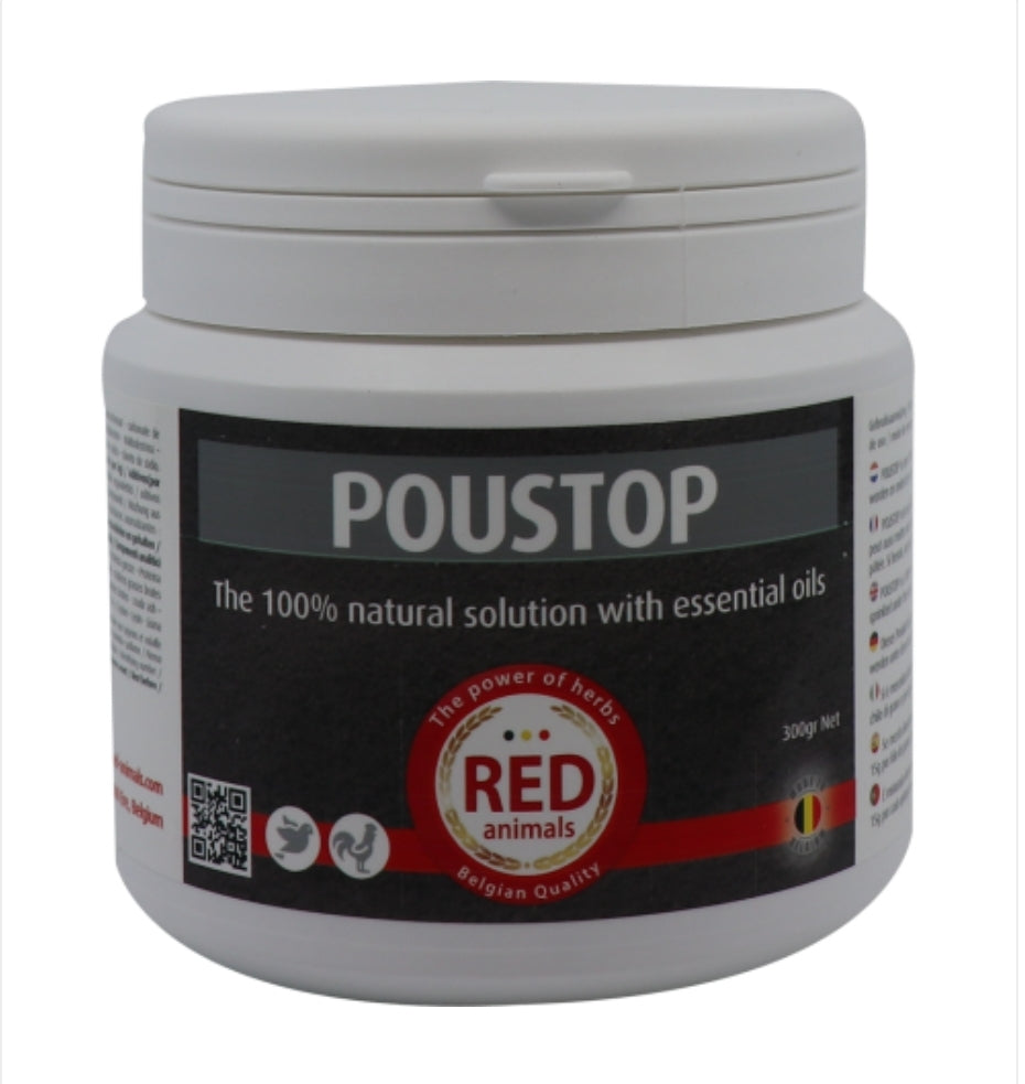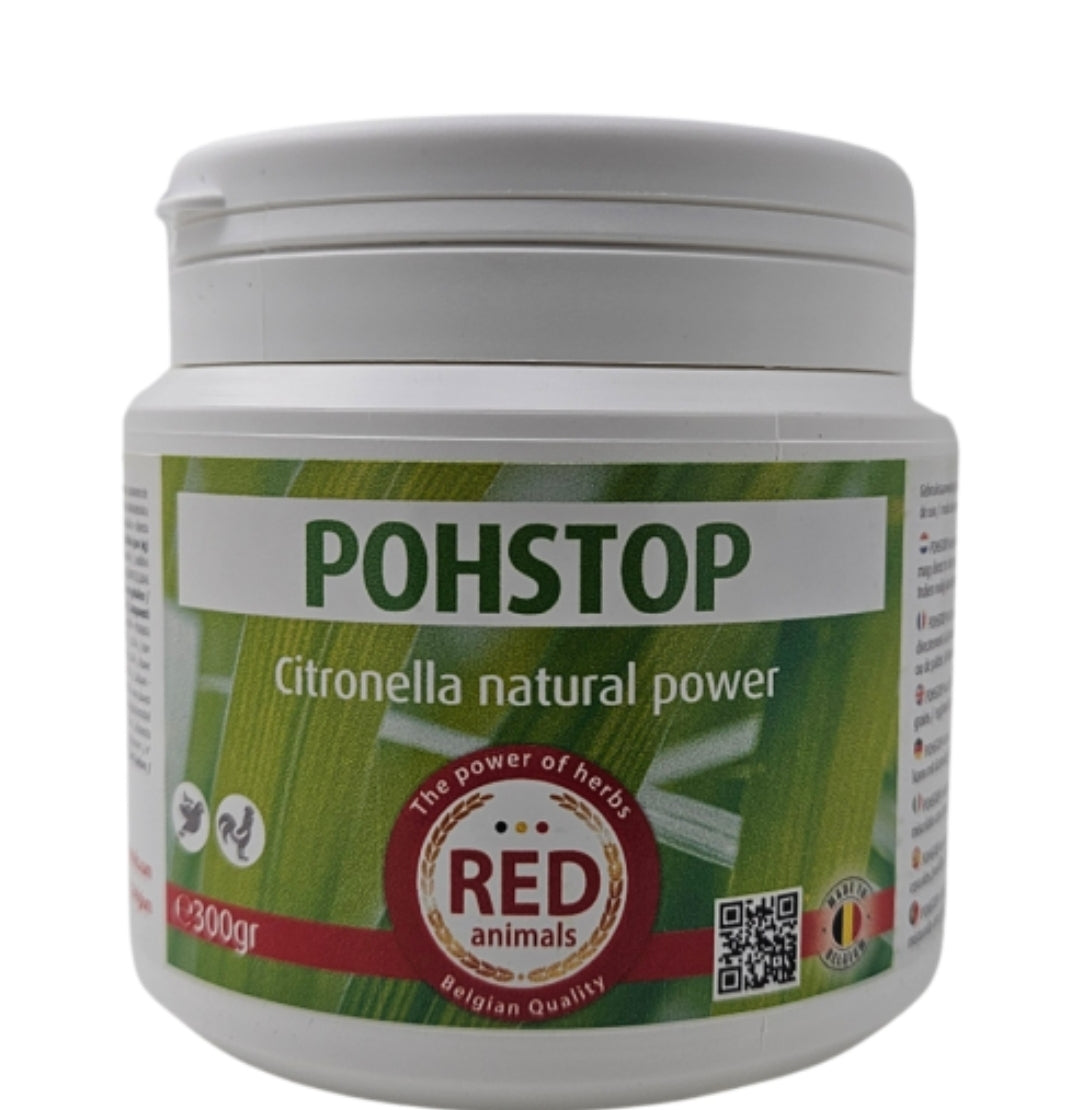 POHSTOP Poeder is geschikt voor kippen, duiven, eenden en kooi & volière vogels. Dit voedingssupplement is op basis van Citronellol en moet rechtstreeks met het voeder van het dier worden vermengd.