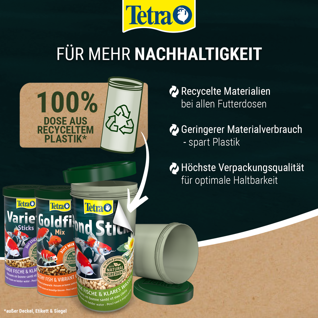 Hoofdvoer voor het dagelijks voeren van alle goudvissen in vijvers. Drie verschillende soorten voer bieden een gevarieerde en biologisch evenwichtige voeding. Verpakking van 1L.