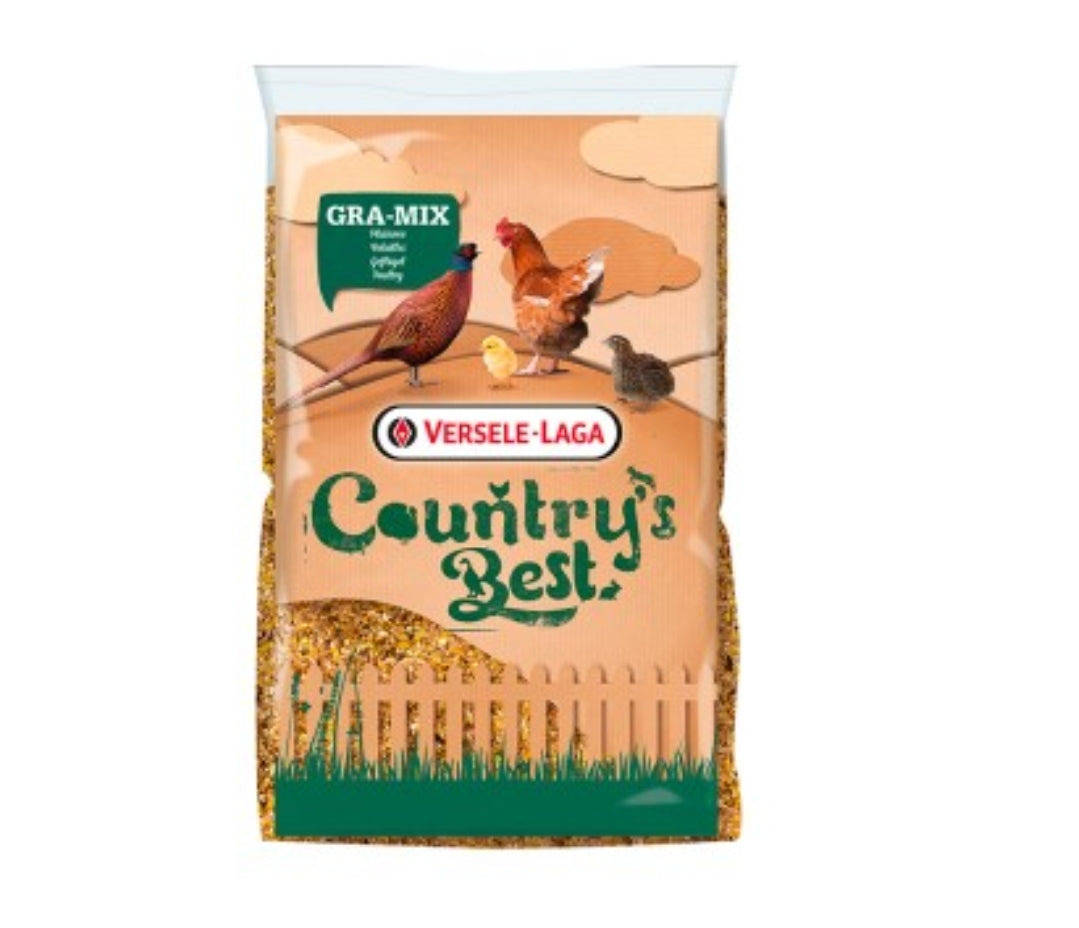 GRA-MIX Ardeens graan is een kwaliteitsvolle graanmengeling voor legkippen, vleeskuikens, eenden, ganzen en ander pluimvee. Deze mengeling bestaat uit een variatie aan granen, zaden en fijn gebroken maïs en is verrijkt met gebroken erwten en zonnebloempitten. Graanmengelingen zijn aanvullende voeders en worden bij voorkeur gerantsoeneerd aangeboden. Voor een optimale gezondheid is het aanbevolen om graanmengelingen aan te vullen met een volledig voeder uit het COUNTRY’S BEST gamma.