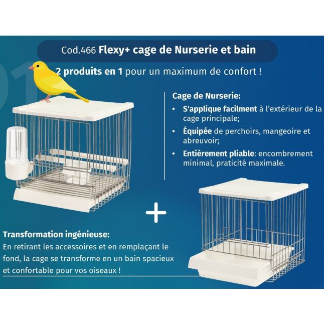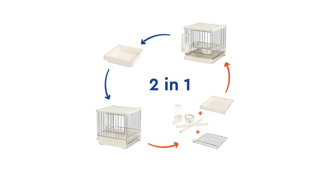 Door de accessoires te verwijderen en de bodem te vervangen, verandert de kooi in een ruim en comfortabel badhuisje voor je vogels!