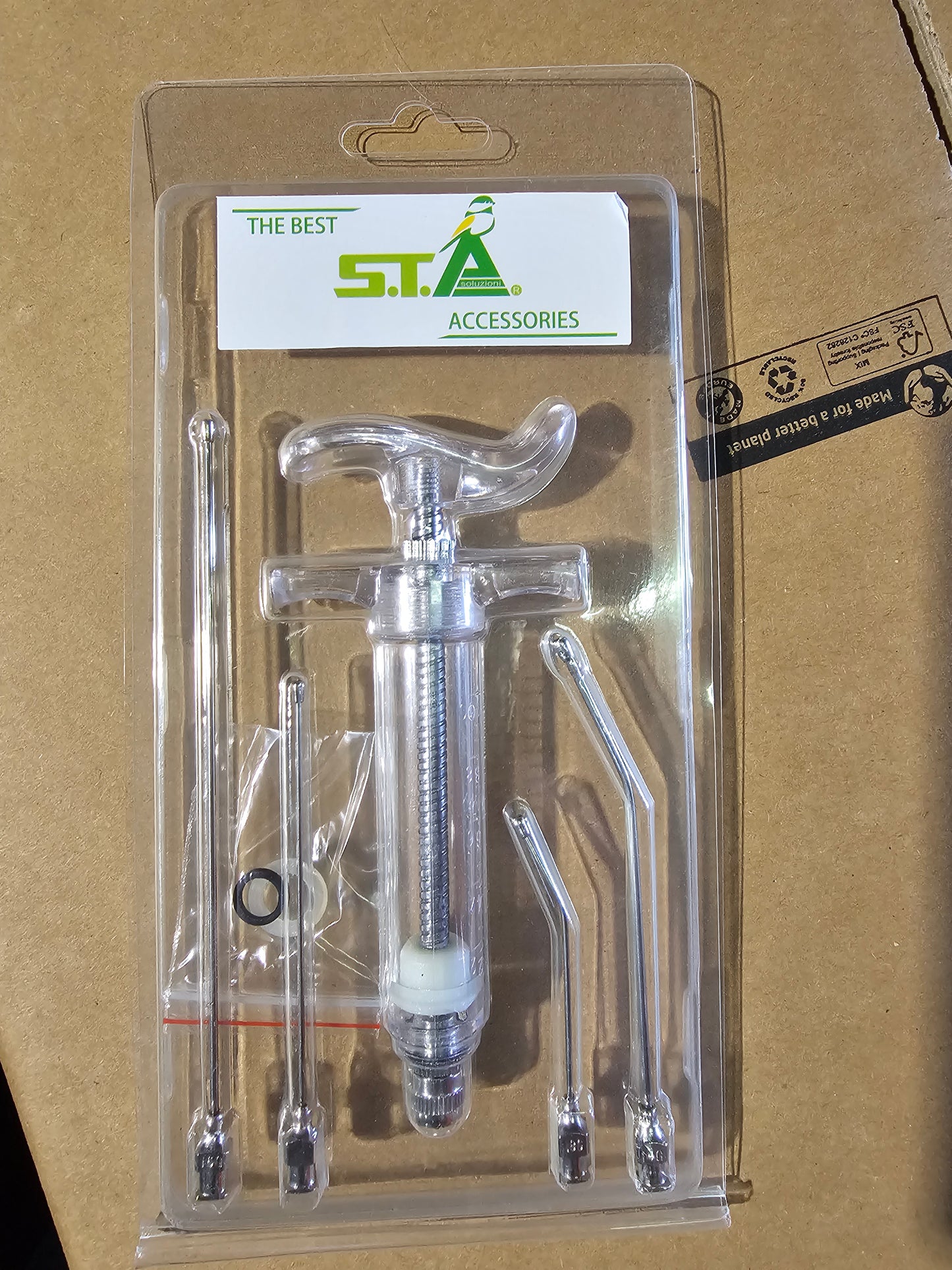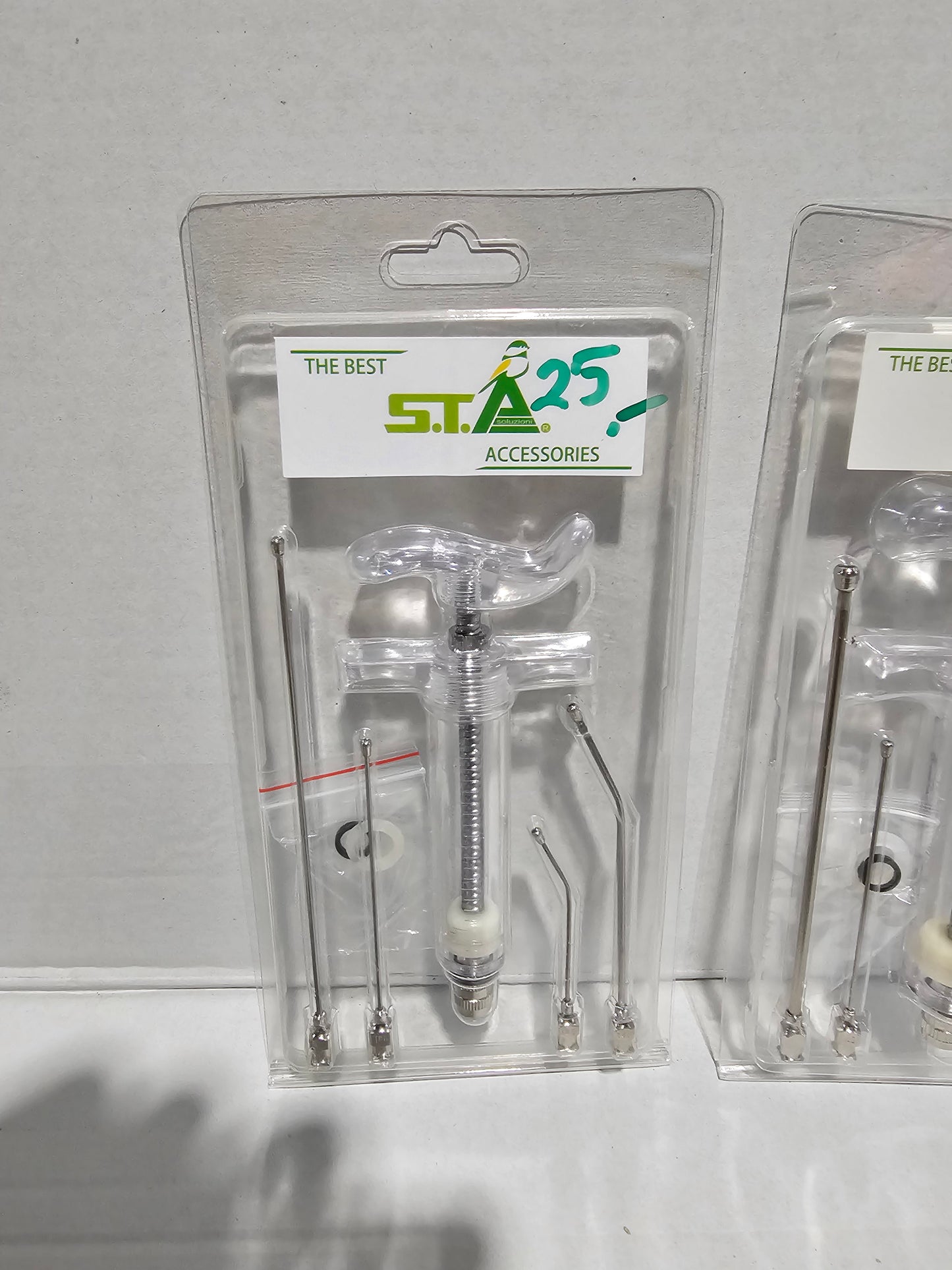 Bestaande uit een injectiespuit en ergonomische naalden die de delicate fase van het voeren van de hennen gemakkelijker maken.